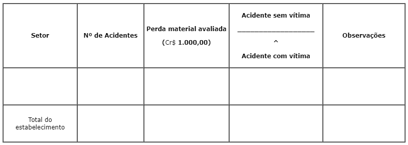 Em caso de acidentes com vítimas, preencher o mapa da seguinte forma: