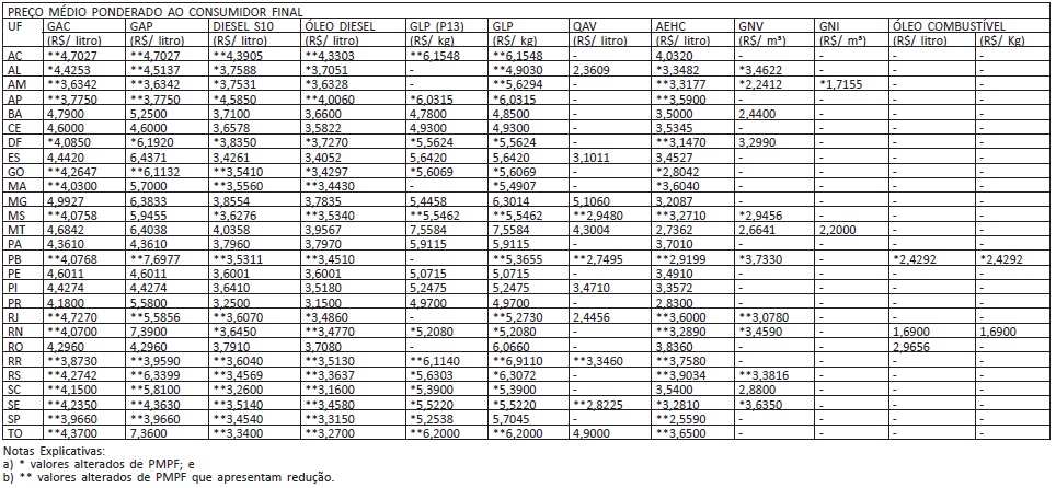 Preço médio ponderado ao consumidor final (PMPF) de combustíveis.