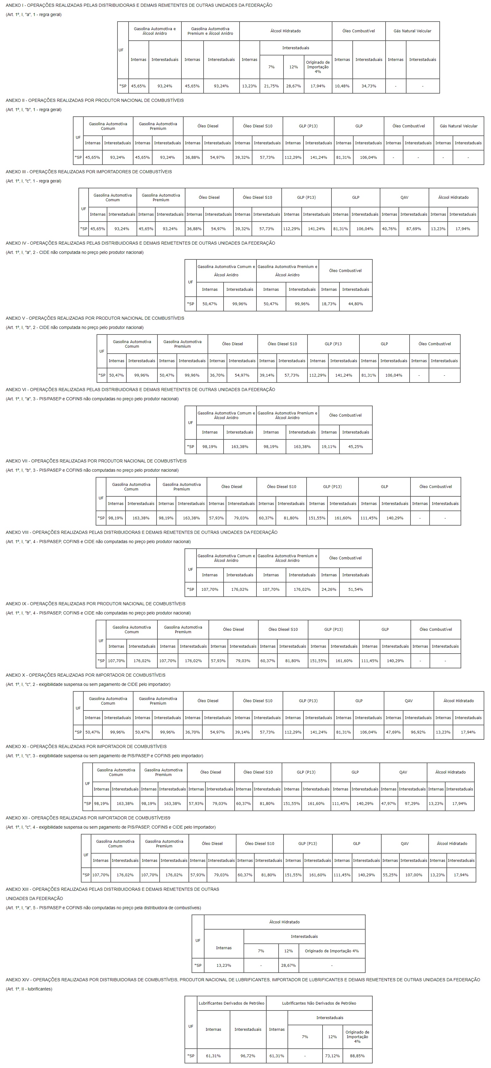 Altera as Tabelas I, II, III, IV, V, VI, VII, VIII, IX, X, XI, XII, XIII e XIV anexas ao Ato Cotepe/ICMS 42/13, que divulga as margens de valor agregado a que se refere à cláusula oitava do Convênio ICMS 110/07, que dispõe sobre o regime de substituição tributária nas operações com combustíveis e lubrificantes, derivados ou não de petróleo, e com outros produtos.