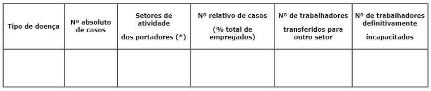Em caso de doenças profissionais adquiridas no exercício da atividade, preencher o quadro da seguinte forma: