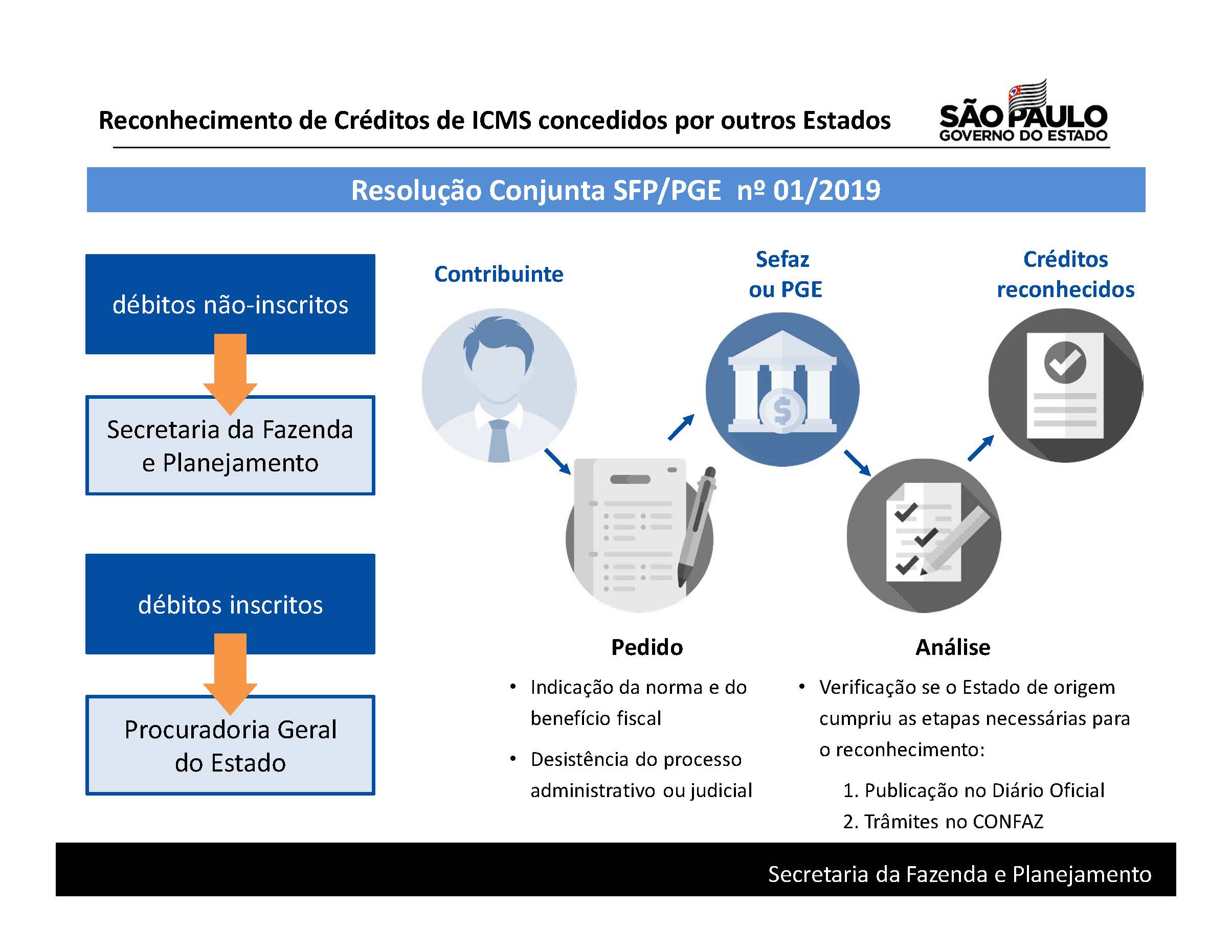 O Governo do Estado de São Paulo adequou a legislação paulista à Lei Complementar nº 160/2017 e ao Convênio 190/2017, que estabeleceram as condições para a regularização de créditos de ICMS concedidos por outros estados. A Resolução Conjunta SFP/PGE nº 1/2019, publicada na edição desta quarta-feira (8) do Diário Oficial, determina os procedimentos necessários para os contribuintes requererem os reconhecimentos desses créditos.